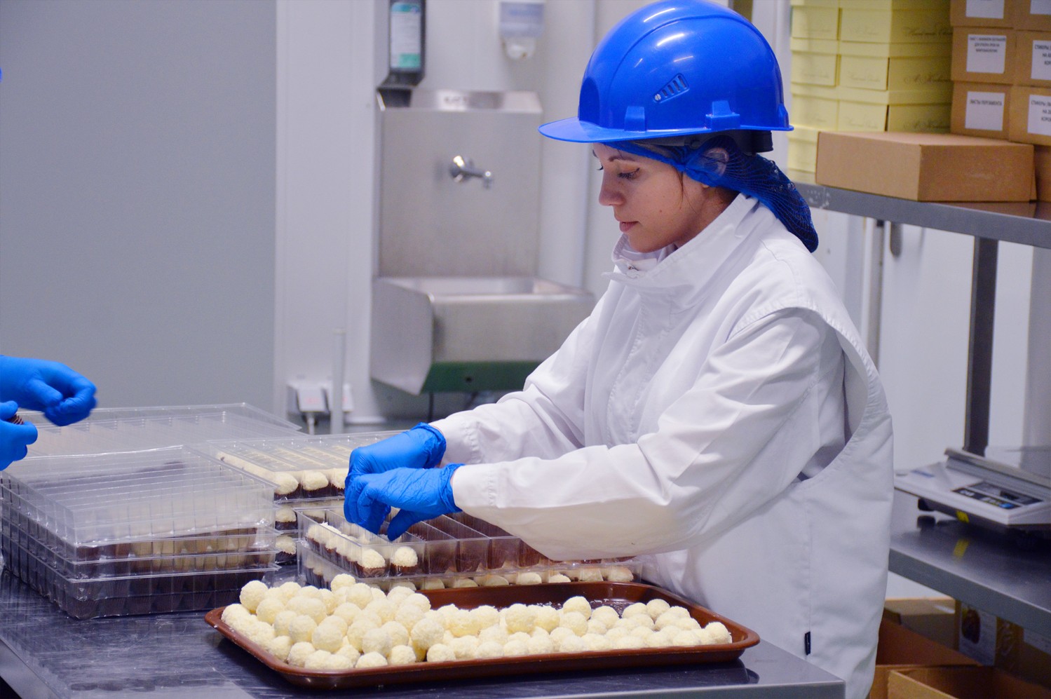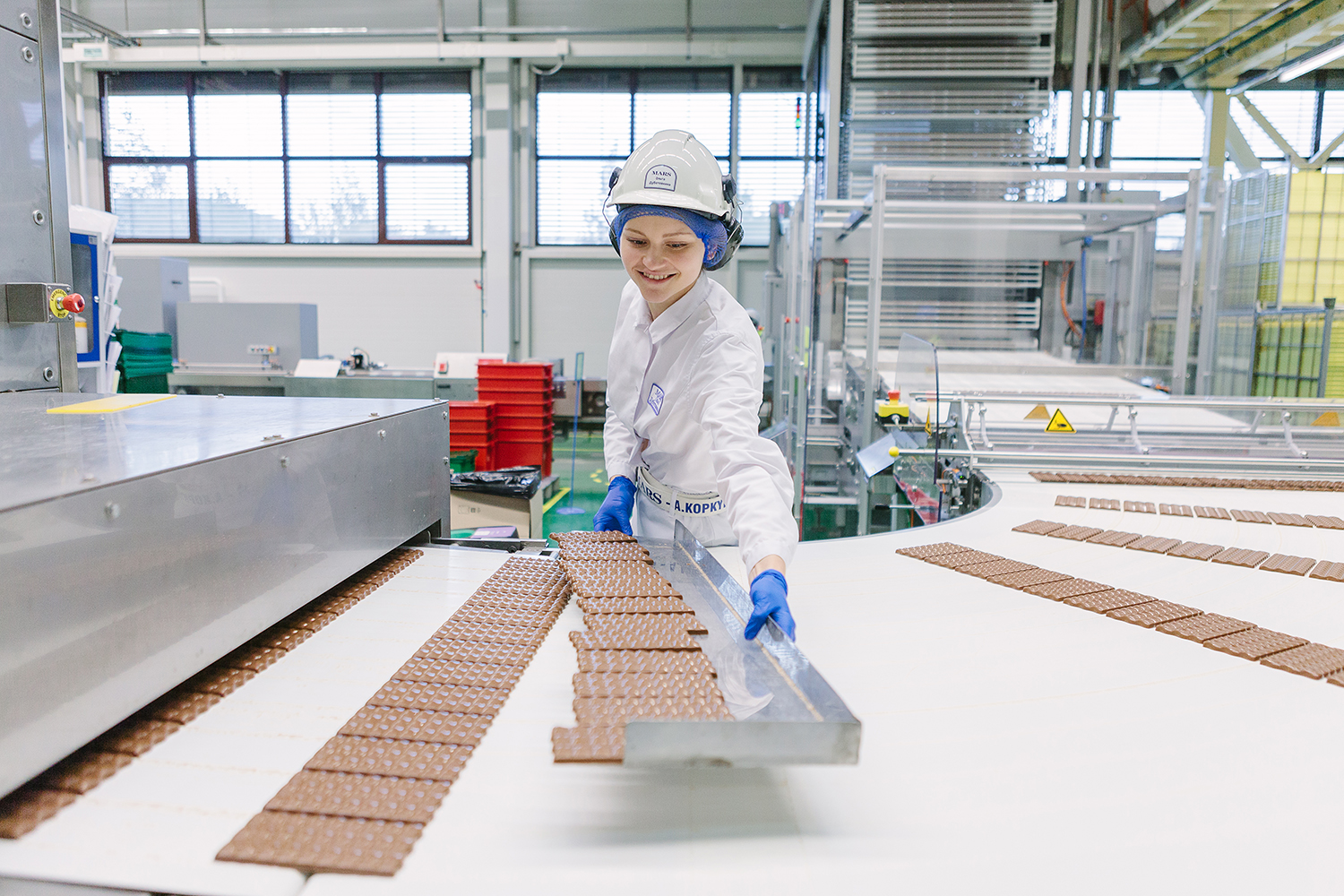 Еще не застывший шоколад попадает в специальную камеру охлаждения. Потом каждая плитка взвешивается, упаковывается, попутно проходя несколько стадий контроля.