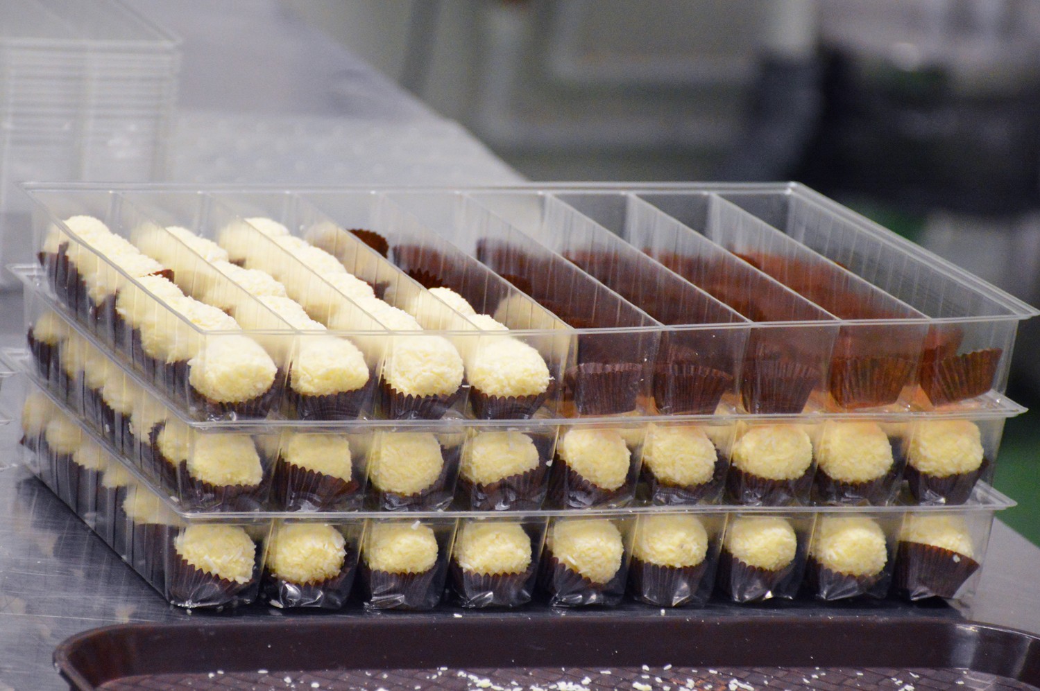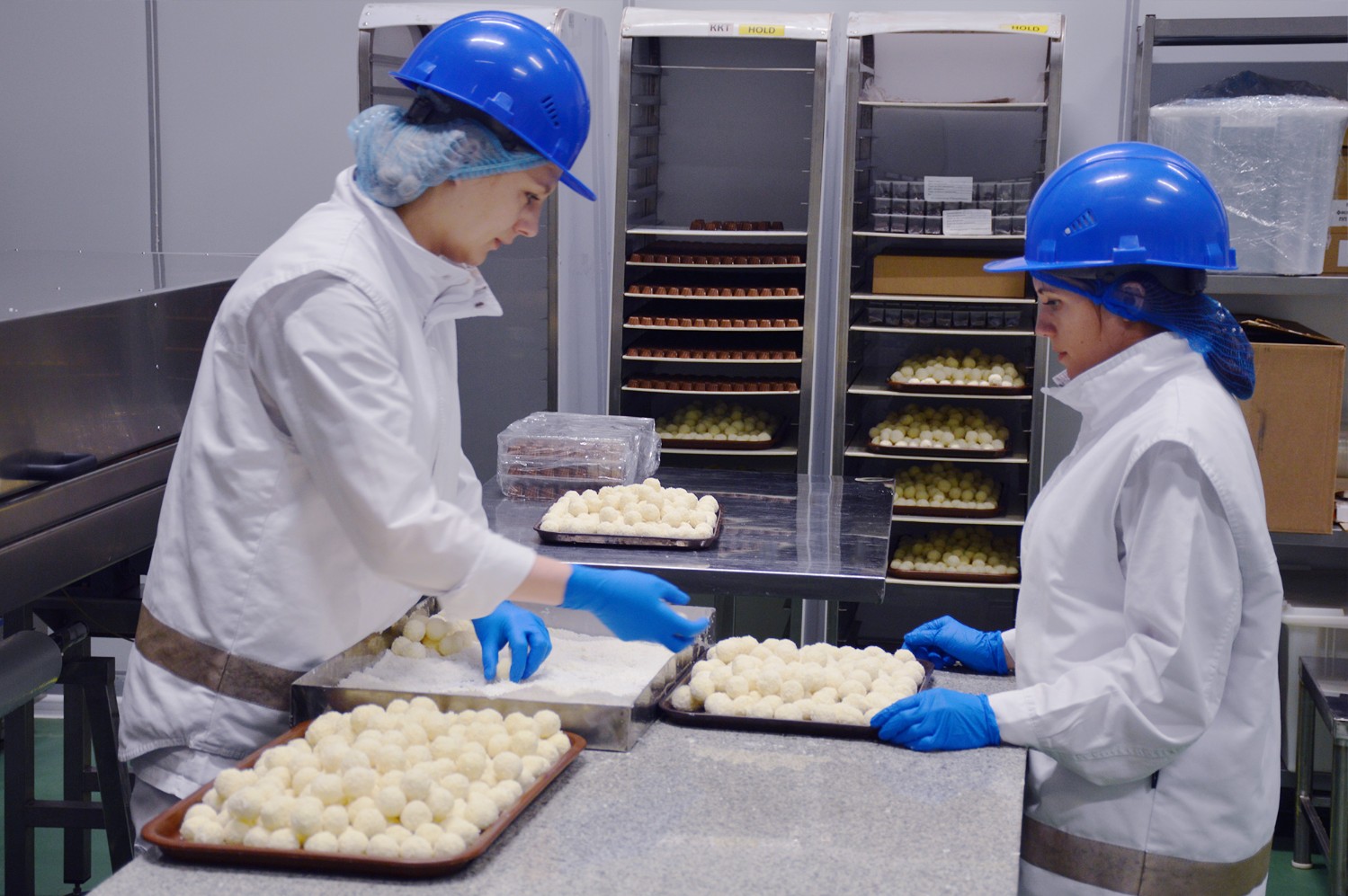 51 тысяч тонн шоколадных изделий выпускается только на этой фабрике "Рот Фронт"! Если знать, что грузоподъемность железнодорожного вагона около 60 тонн, то получается, что производят здесь 850 вагонов сладостей в год. Причем вкус шоколада каждый может выбрать по себе – горький, с фруктовыми начинками, посыпками, карамелью, пралине, орехами, брауни – глаза разбегаются! И совершенно уж особенное чувство, когда по конвейеру плывут свежие шоколадки в формах. Кажется, если рай есть, то выглядит он так.