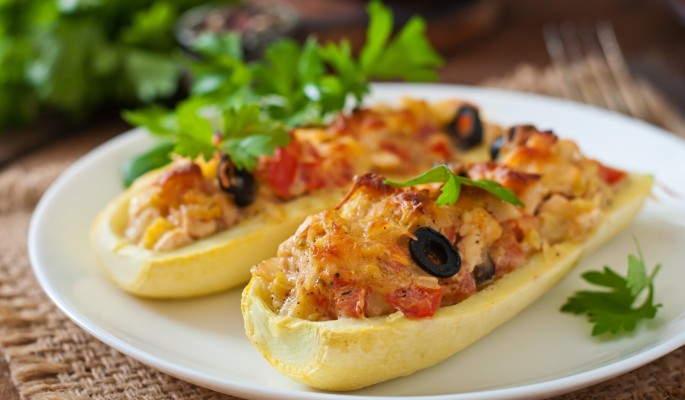 - Наполните подготовленные половинки цукини начинкой.