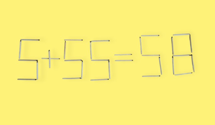 На картинке, которая сверху, ошибочно сделан пример: "5 + 55 = 58". Ошибка совершена намеренно, ваша задача выявить ее и переместить исключительно 1 спичку для верного решения. На раздумья дается исключительно 5 секунд.