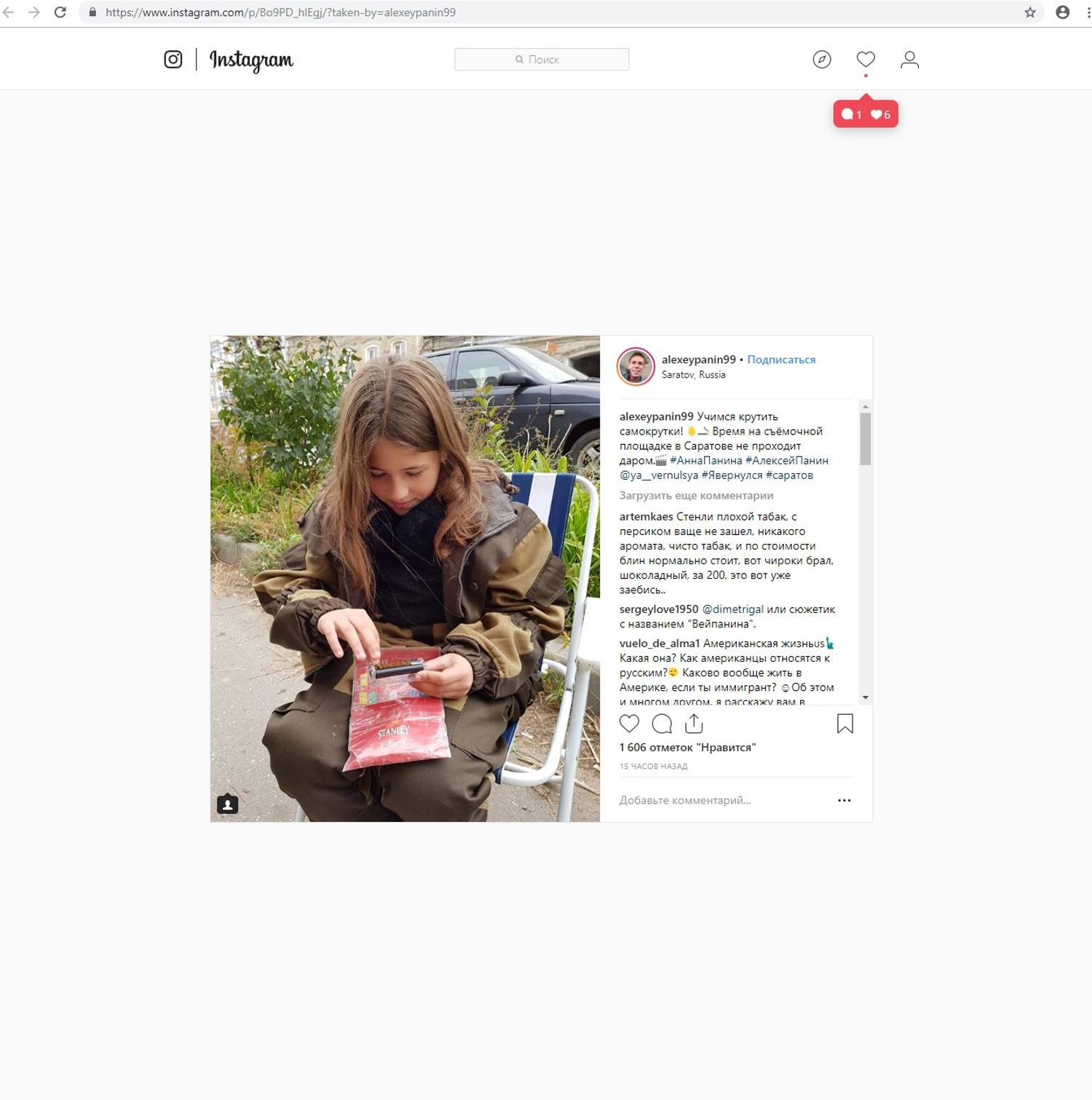 Пользователи неоднозначно отнеслись к занятию Нюси. Многие расценили его как неподходящее ребенку, а другие и вовсе решили, что оно запретное, и накинулись с критикой на Алексея. "Вот Лешка правокатор;))", "Детство с папой????. Крутит ,но пользоваться она никогда не будет. Потому что уже не интересно, покрутила же в детстве", "А почему она не в школе?? Все нормальные дети у нормальных родителей сейчас учатся... жалко девочку, ничего хорошего точно не вырастет", "Вы серьезно, девочке всего 11 лет, темболее она девочка и учити крутить самокрутку!!!?!!! Это не правильно она с подругами, и с куклами должна ходить или быть актрисой но не самокрутки крутить", "Да как вы можете ???? табак ребенку", "Брось. Курение это яд. Особенно детям (орфография и пунктуация авторов сохранены. – Прим. ред.)", – высказались подписчики.
